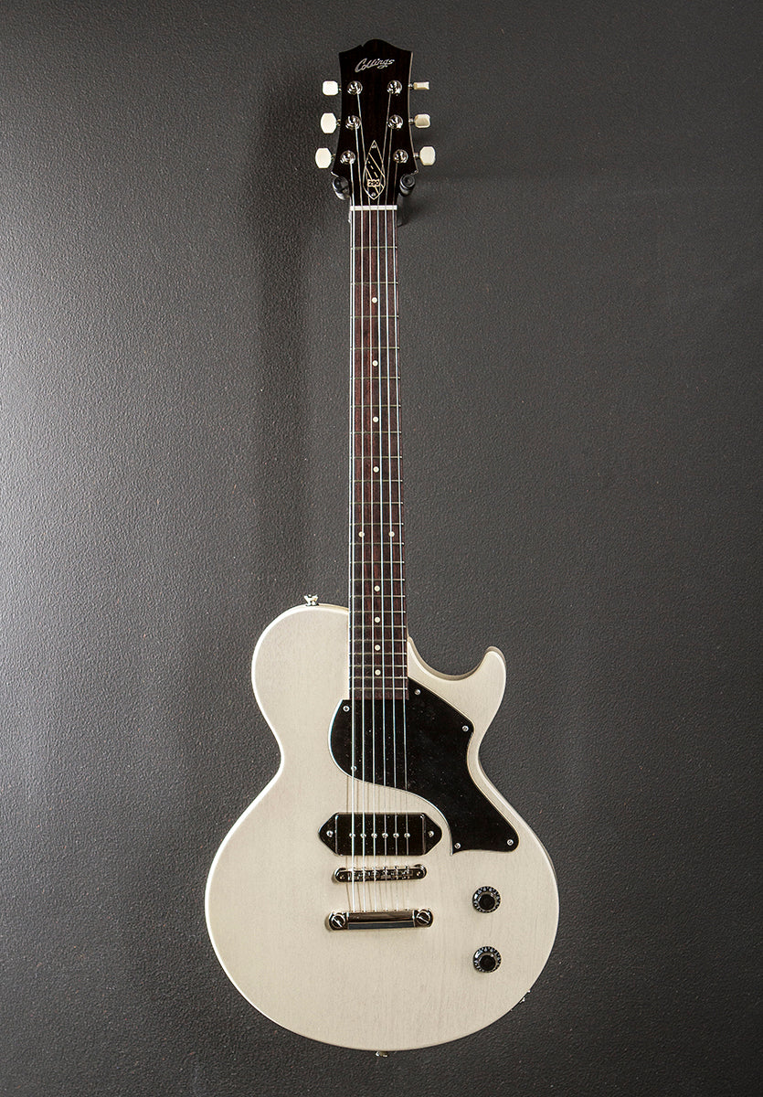 Vintage White, Serial number 290241816, High gloss nitrocellulose lacquer finish, Solid Honduran Mahogany body, Extra long mortise and tenon neck joint, C shaped Honduran Mahogany neck, 12" radius Rosewood fingerboard with the Ivoroid long dot inlays and medium frets, 24 7/8th" scale length, 1 11/16th" nut width, Lollar Dogear P-90 pickup with the 50's style wiring, Kluson ABR-1 tune-o-matic bridge and stop tailpiece, Collings/Gotoh tuners, 7.2 pounds, With the Ameritage hardshell case