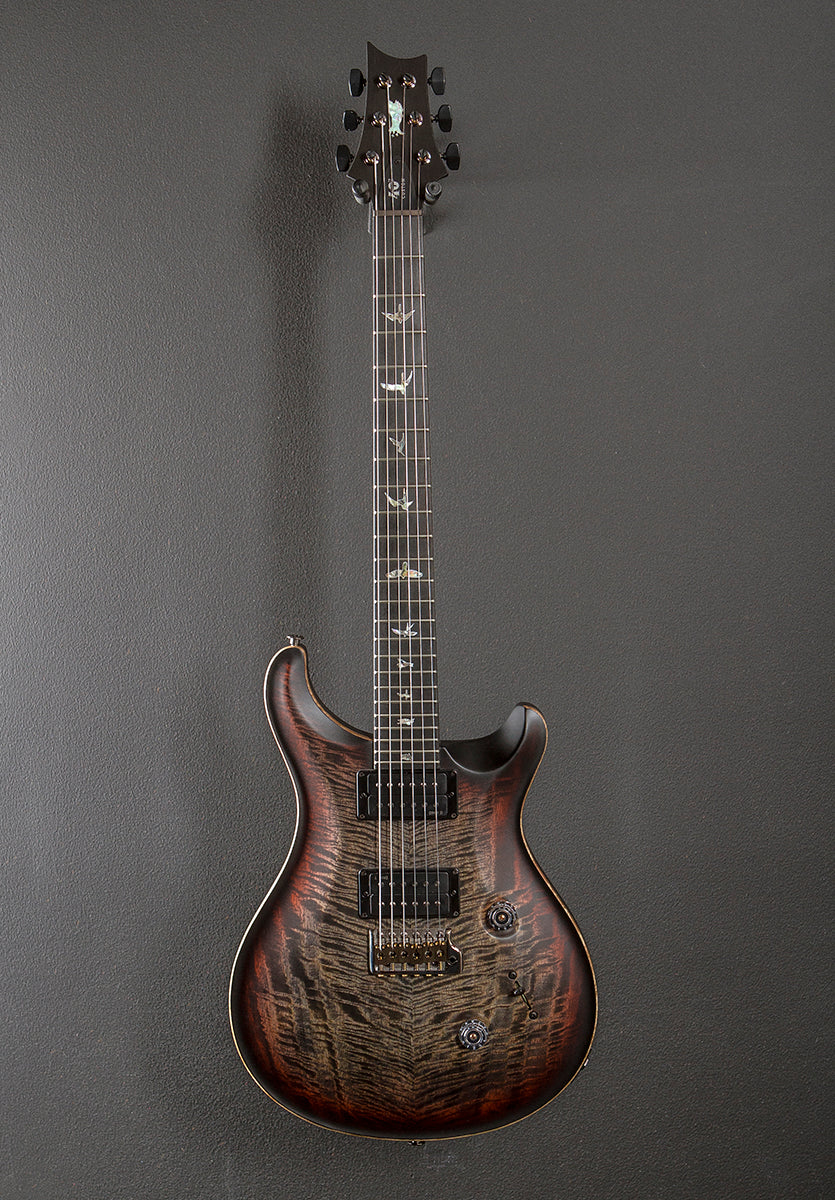 Charcoal Tri-Color Burst, Satin nitro finish, Violin carved figured Mango top, Mahogany body, Pattern Thin carved Mahogany neck, 10" radius Ebony fingerboard with the outlined old school Bird inlays, Ebony headstock veneer with the outlined pre-factory Eagle logo, 25″ scale length, 1 11/16th" nut, PRS DMO bridge and neck pickups, 5-way blade switching with the volume and tone controls, PRS Gen III tremolo, PRS Phase III locking tuners with the wing buttons, 7.6 pounds, With the PRS D1 ATA multi-fit molded hardshell case