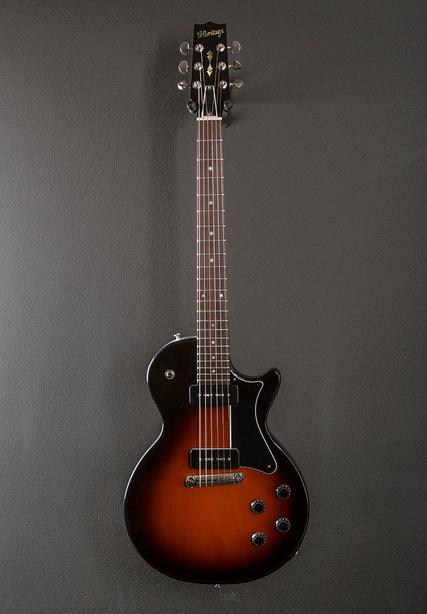Three Color Sunburst, Vintage gloss nitrocellulose lacquer finish, Mahogany body, 50's C shaped Mahogany neck, 12” radius Rosewood fingerboard with the dot inlays and medium jumbo frets, 24.75″ scale length, 1 11/16th" nut width, Heritage 225 Classic P-90 bridge and neck pickups, 3-way toggle switching with the volume and tone controls for each pickup, Wraparound stop tailpiece, Heritage cast/sealed tuners, The neck thickness is .90″ at the first and 1.00″ at the 12th frets, 6.8 pounds, With the Heritage hardshell case, Excellent