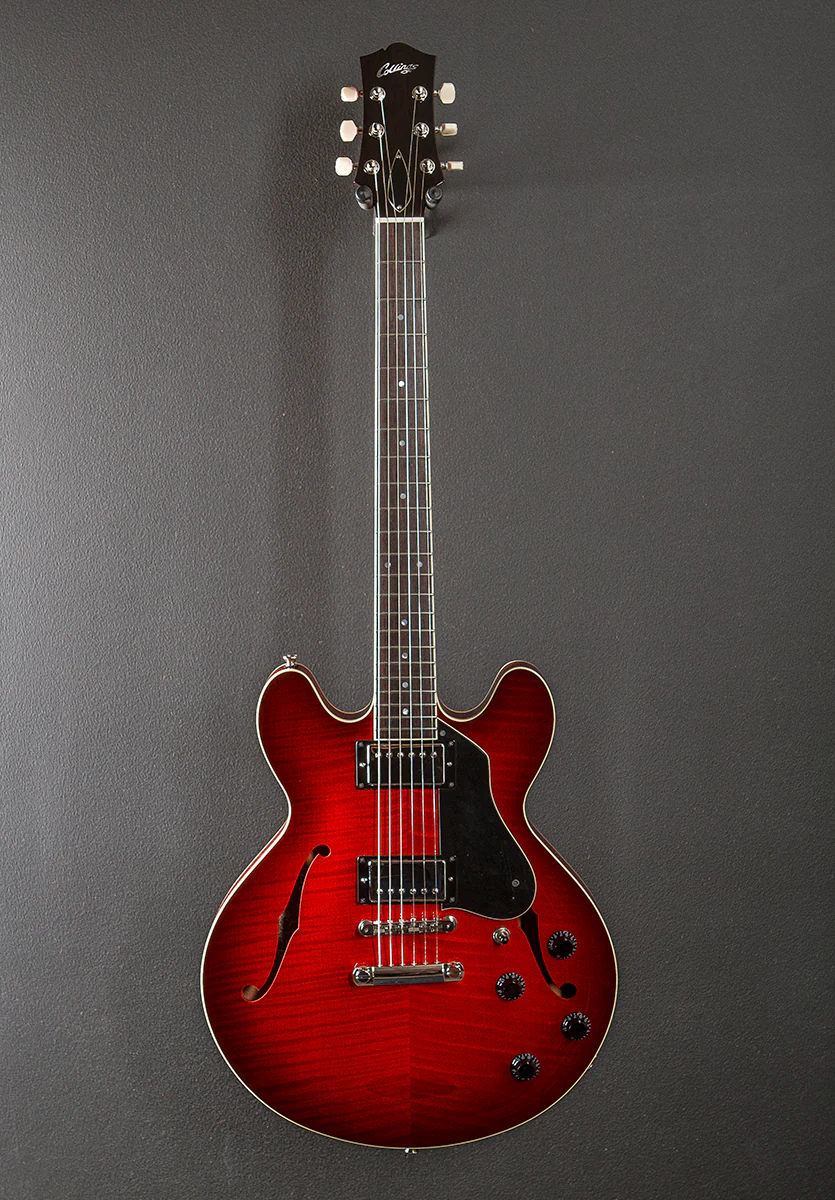 "With a 15" lower bout and hand-carved solid wood construction, the I-35 is a unique modern tribute to the heritage of the double cutaway semi-hollow electric guitar. The I-35's design pairs a mahogany back and sides with a maple center center block for a tonal response that is complex and quick, with an "airy" character. The I-35's top carve includes high arches and ample re-curve, allowing the best qualities of the solid wood to shine though in its amplified tone. An instrument that is at home in almost any genre, the Collings I-35 has quickly become one of our most popular electric models."