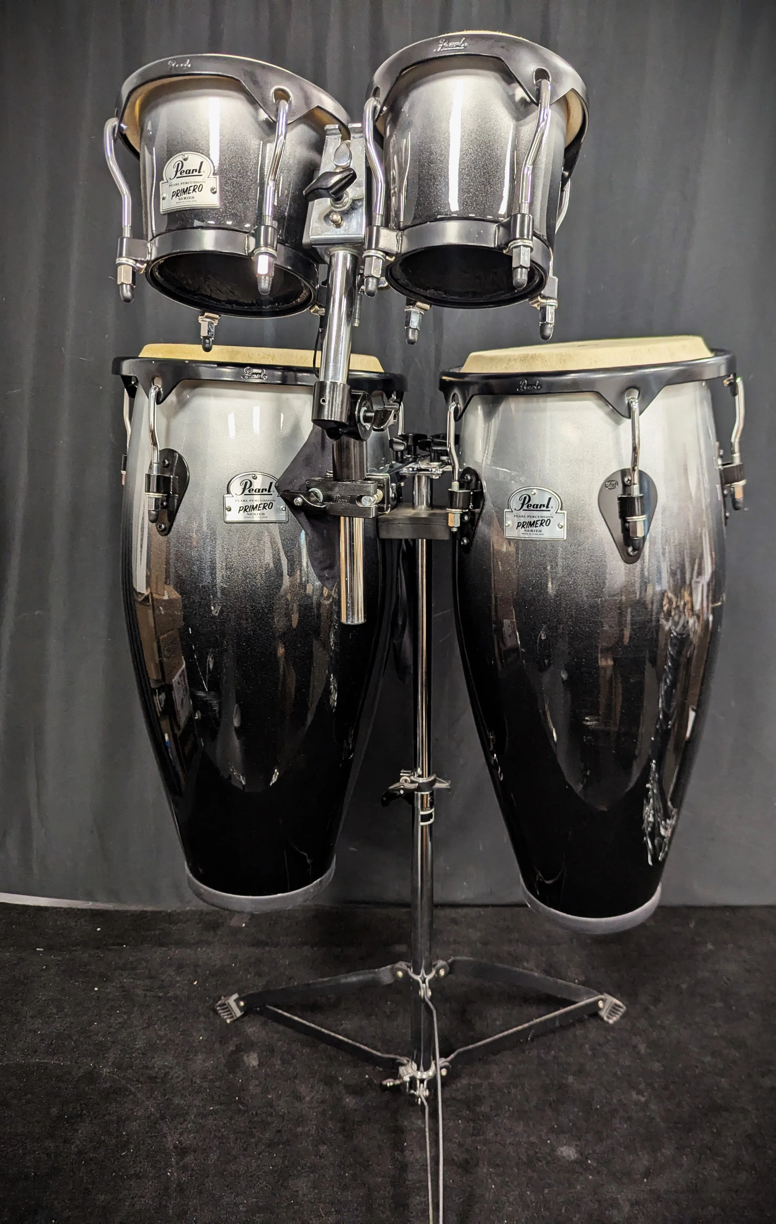Fiberglass shell conga and bongo set.