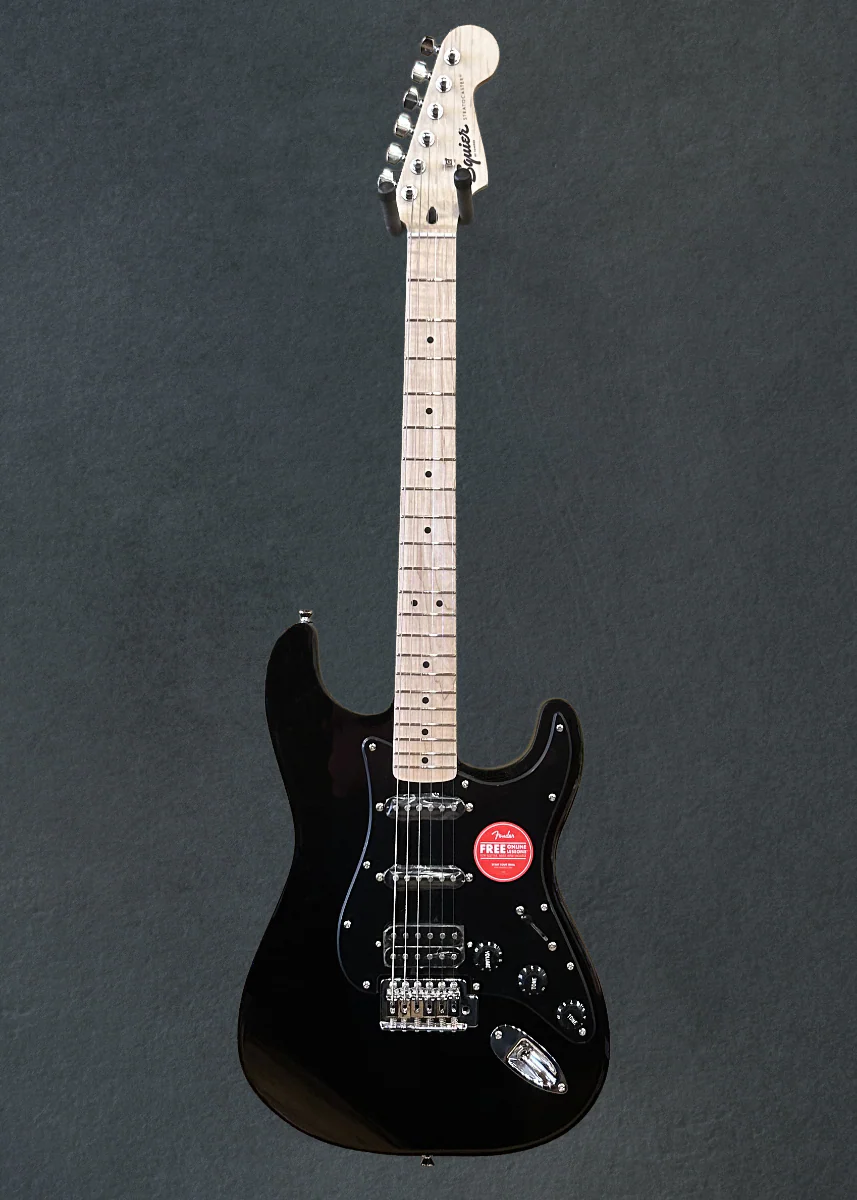 - Squier humbucking bridge pickup, single-coil neck and middle pickups (HSS)
