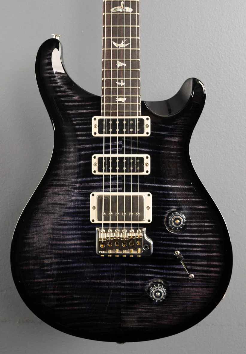 Purple Wrap Burst, Violin carved figured Maple top, Mahogany body, Pattern carved Mahogany neck, 10" radius Rosewood fingerboard with the Bird inlays, 25″ scale length, 1 11/16th" nut, PRS 58/15 LT bridge and PRS Narrowfield middle/neck pickups, 5-way switch plus the master volume and push pull tone controls, PRS Gen III tremolo and PRS Phase III locking tuners, 8.4 pounds, With hardshell case., Excellent -ON HOLD TF TOW 02/17